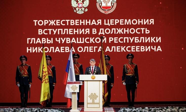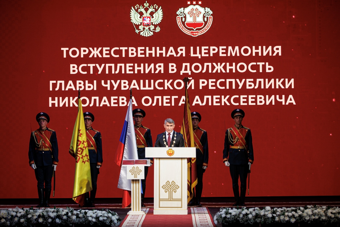 Вступая в должность, вновь избранный глава региона произнес присягу на верность народу республики, Конституции Российской Федерации и Конституции Чувашской Республики.