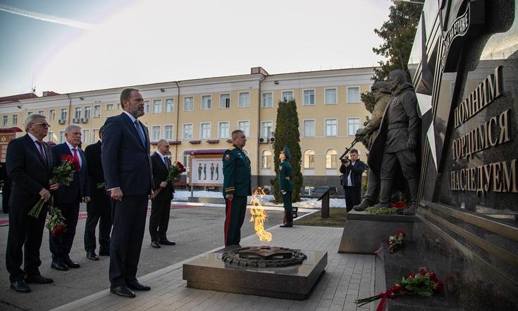 После официальной части командование и гости возложили цветы к мемориалу «Памяти военнослужащих и сотрудников округа, погибших при исполнении воинского и служебного долга».