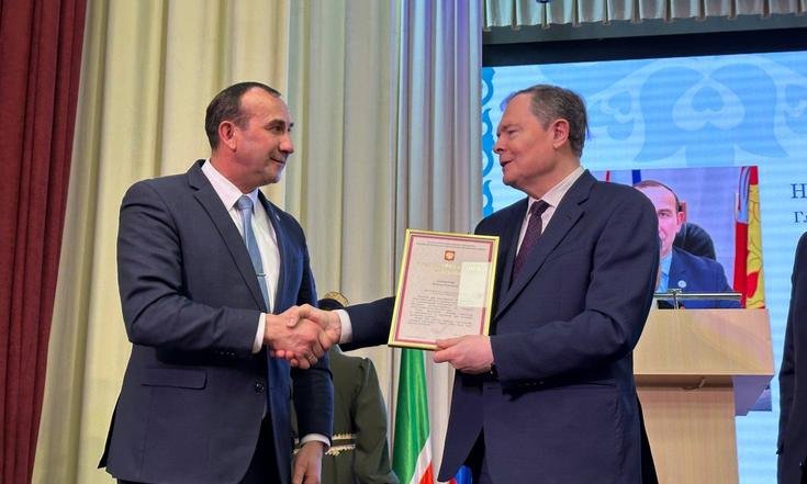 По поручению полномочного представителя Президента Российской Федерации в Приволжском федеральном округе Игоря Комарова главный федеральный инспектор по Республике Татарстан Виктор Демидов вручил главе Тукаевского муниципального района Камилю Назмиеву Благодарность полномочного представителя Президента РФ в ПФО.