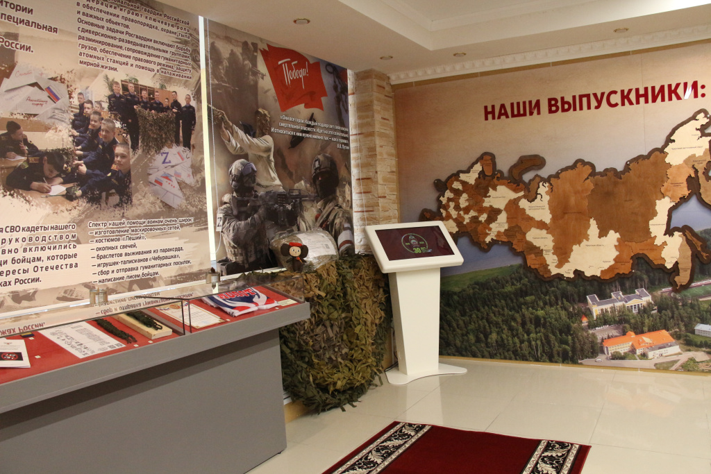Торжественные мероприятия начались с возложения цветов к мемориалу военнослужащим и сотрудникам, погибшим при исполнении воинского и служебного долга. Главным событием стало открытие в училище мультимедийного музея.