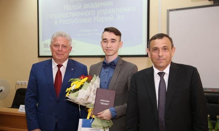 2 августа 2017 года в Марийском государственном университете состоялась торжественная церемония вручения дипломов слушателям Малой академии государственного управления Республики Марий Эл. Будущим управленцам документы об окончании курса вручили заместитель полномочного представителя Президента России в Приволжском федеральном округе Игорь Паньшин и временно исполняющий обязанности главы Республики Марий Эл Александр Евстифеев.