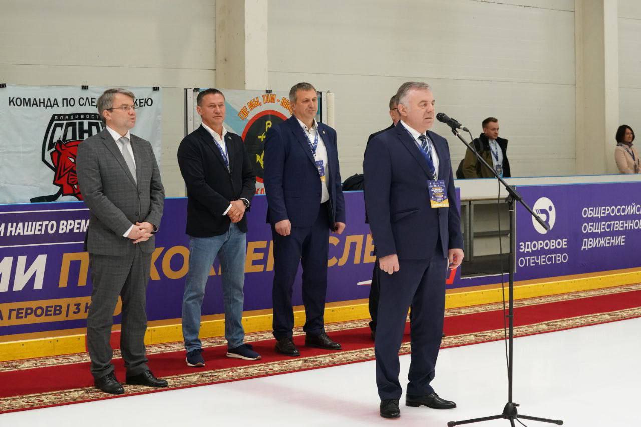 От имени полномочного представителя Президента Российской Федерации в Приволжском федеральном округе Игоря Комарова к участникам и организаторам турнира обратился помощник полпреда Владимир Колчин: «Чемпионат России по следж-хоккею в дивизионе «Лига Героев» – «Герои нашего времени» – это важное и значимое событие для всей нашей большой многонациональной страны, богатой культурными и спортивными традициями. В Приволжском федеральном округе любят хоккей. Особая признательность участникам турнира. Ваша активность и стремление к занятию спортом вызывают уважение. Хоккей формирует твердый характер, волю, мужество и выносливость, способствует развитию командных навыков. Для нас вы все уже победители и находитесь на вершине спортивного Олимпа».