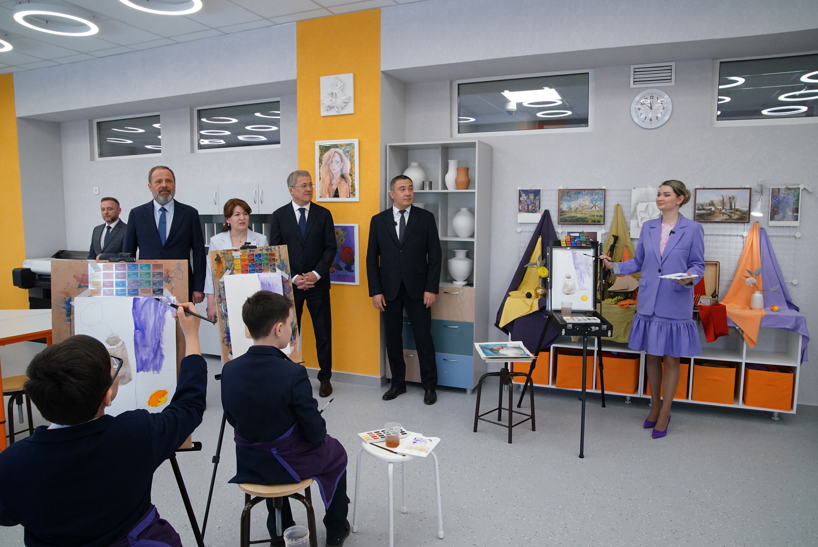 Во время осмотра школы Игорь Комаров и Радий Хабиров посетили кабинет биологии и лаборатории, где ребята занимаются исследованиями на современном оборудовании, кабинеты начальных классов, рисования и графики, актовый и спортивный залы.