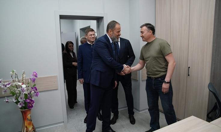 Полномочный представитель Президента России и Глава Башкортостана осмотрели зону ожидания с комфортными диванами и чайной зоной, кабинеты психологов и психологической разгрузки, демонстрационную комнату с образцами технических средств реабилитации, предоставляемых бойцам с инвалидностью и, конечно, поговорили с участниками СВО.