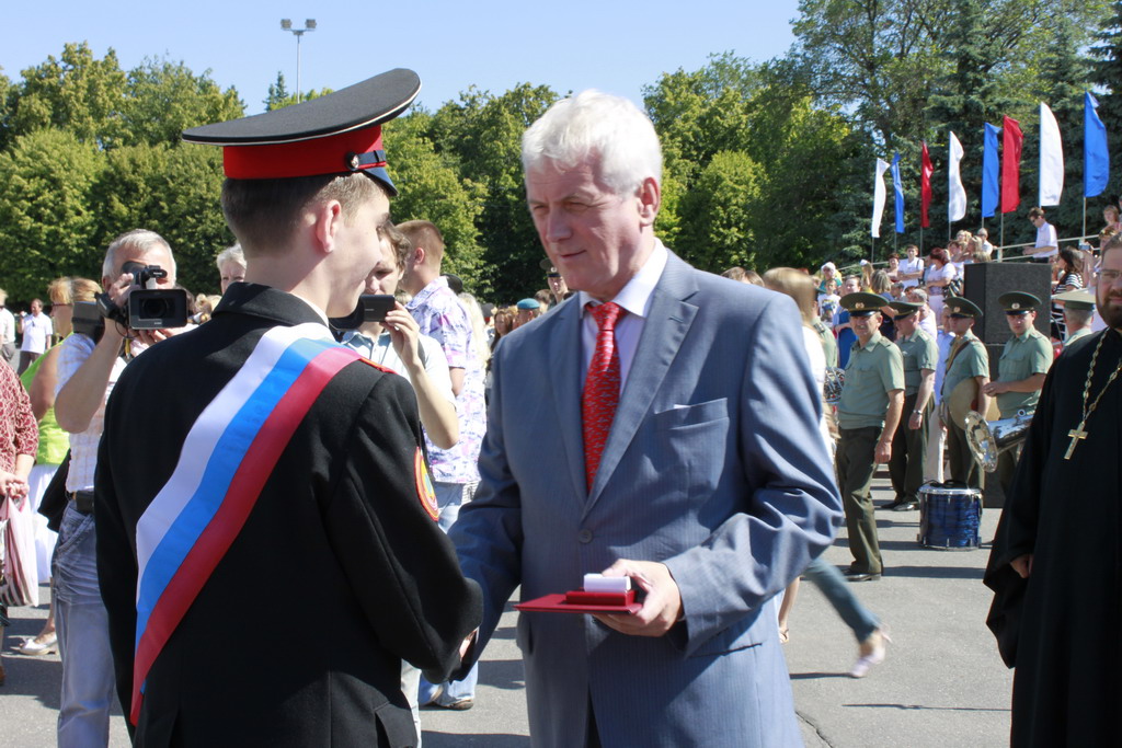 В своем обращении к выпускникам Владимир Козин подчеркнул, что выбор, который курсанты сделали четыре года назад, поступая в суворовское училище, заслуживает большого уважения: «Служить Родине – это самая сложная, почетная и ответственная задача. Желаю Вам достойно продолжить начатый путь». Главный федеральный инспектор вручил отличникам учебы аттестаты и золотые медали.