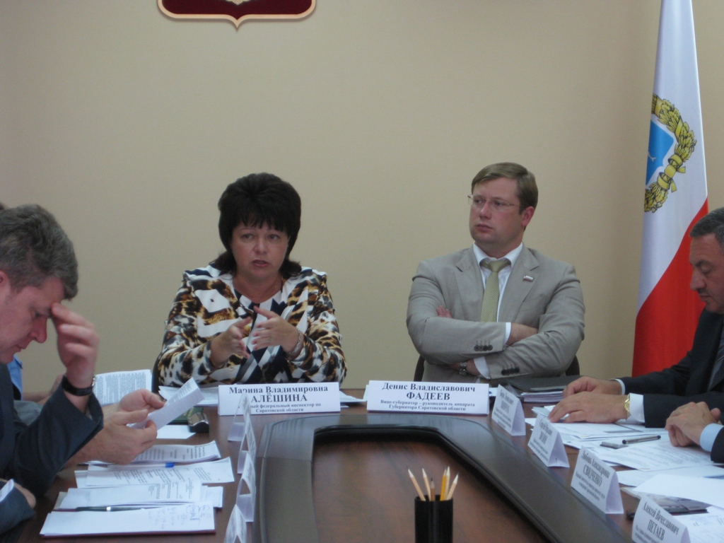 20 августа 2013 года главный федеральный инспектор по Саратовской области Марина Алешина провела совещание по вопросам совершенствования миграционной политики, а также работы по противодействию незаконной миграции в Саратовской области. В работе совещания приняли участие вице-губернатор – руководитель аппарата губернатора Саратовской области Денис Фадеев, начальник пограничного управления ФСБ России по Саратовской и Самарской областям Сергей Митюшин, начальник Управления федеральной миграционной службы по Саратовской области Виктор Мальков, руководство ряда министерств областного правительства и администраций муниципальных районов.