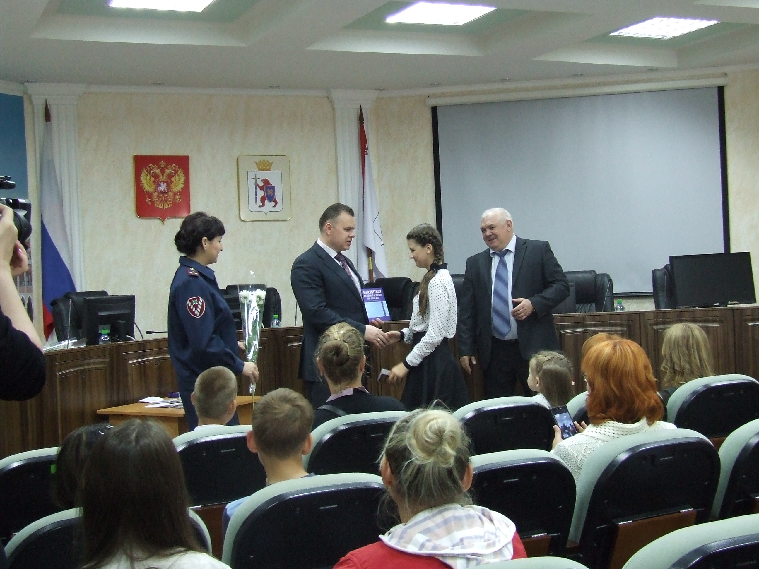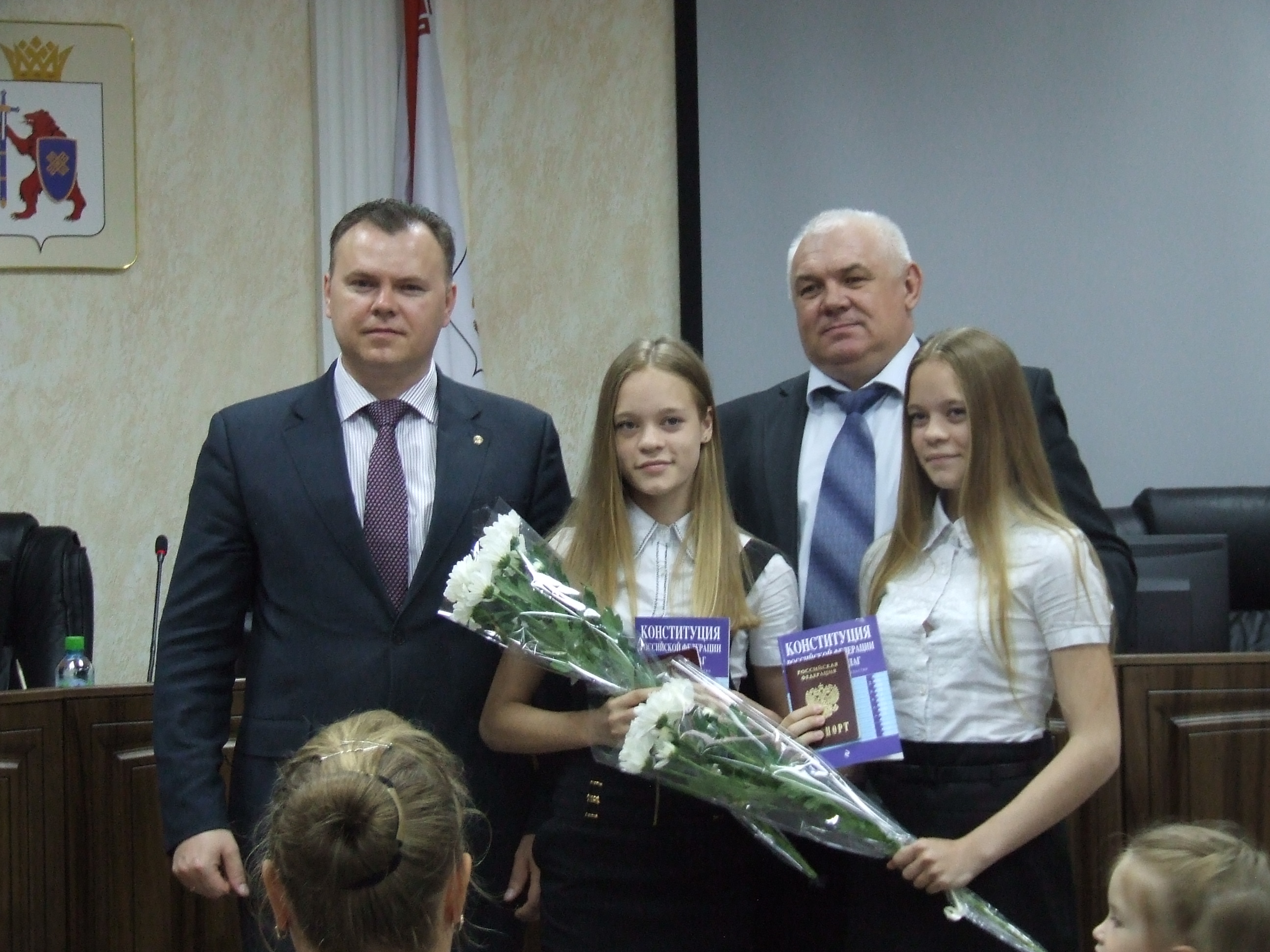 8 июня в зале коллегии МВД по Республике Марий Эл состоялась торжественная церемония вручения паспортов юным йошкаролинцам. 13 юношей и девушек получили самый главный документ в своей жизни. Главный федеральный инспектор по Республике Марий Эл Павел Логинов поздравил ребят и вручил каждому из них памятный экземпляр Конституции России.
