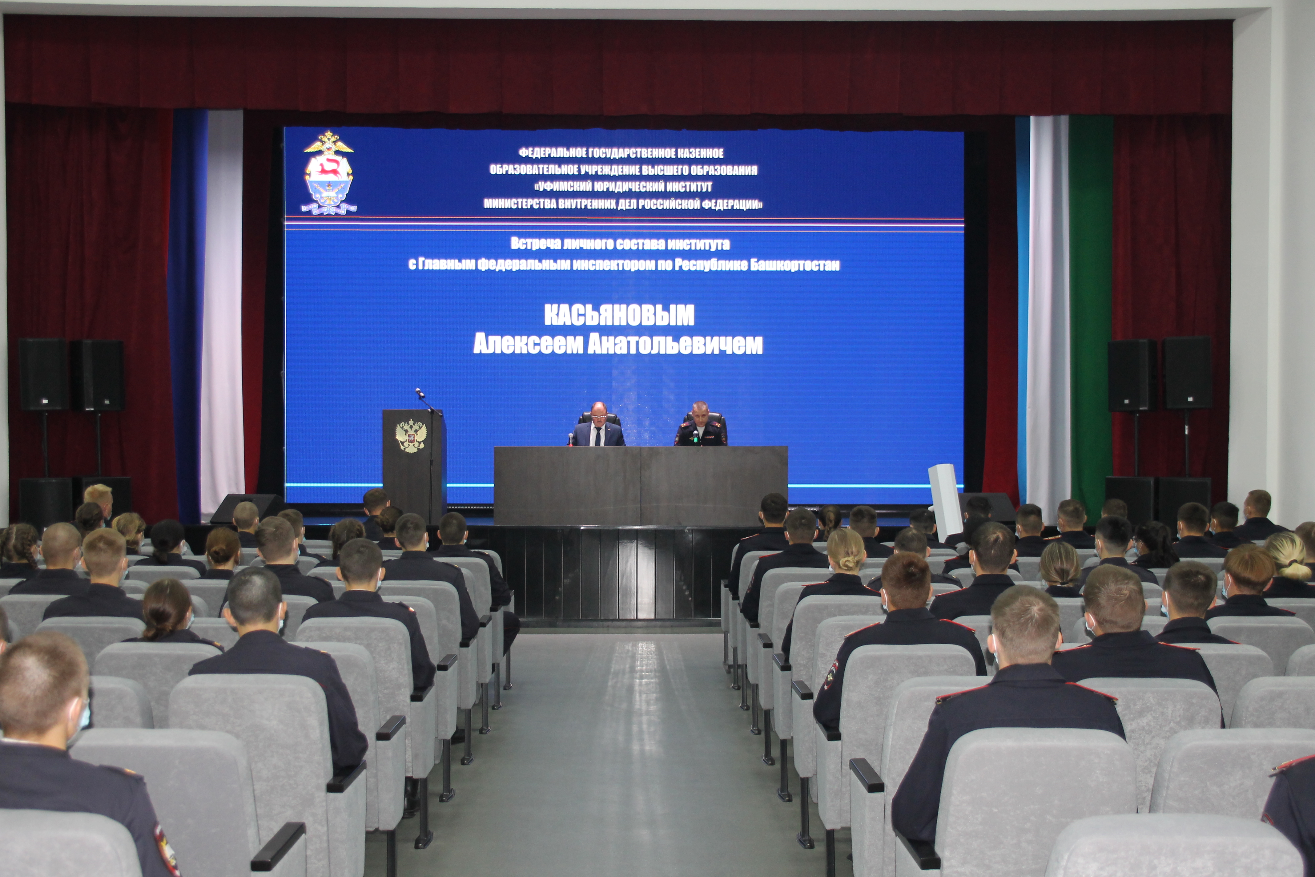 «Выпускники Института успешно работают в подразделениях правоохранительных органов на территории всего постсоветского пространства. На их плечах лежит огромная ответственность - поддерживать правопорядок, бороться с преступностью, противодействовать терроризму Вы тоже, как и они, выбрали сложный и ответственный путь – служить Закону. Но это почетная и важная миссия для государства», - сказал Алексей Касьянов, приветствуя ребят в актовом зале, где он пообщался со слушателями. Главный федеральный инспектор прочитал лекцию о развитии России, затронув параллели разных исторических эпох, государственного устройства, характер взаимоотношения между структурами власти, поделился взглядами на современные веяния в культуре и педагогике, роли морали, этики, а также собственным профессиональным опытом. В завершении Алексей Касьянов ответил на вопросы курсантов и поздравил молодежь с новым учебным годом, пожелал им здоровья, успешной учебы.