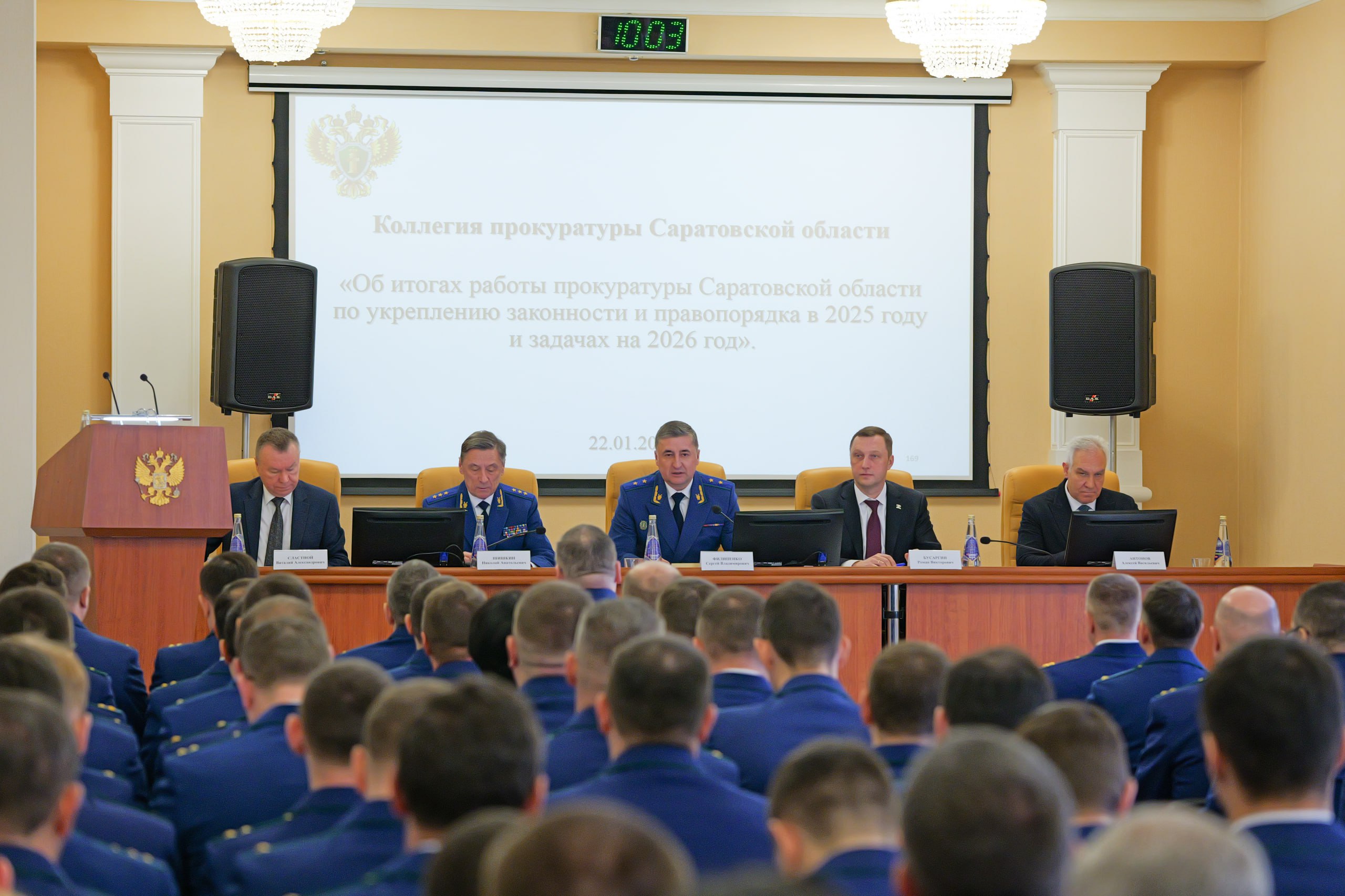 22 января 2026 года главный федеральный инспектор по Саратовской области Виталий Сластной по поручению полномочного представителя Президента Российской Федерации в Приволжском федеральном округе Игоря Комарова принял участие в заседании коллегии прокуратуры Саратовской области, посвящённом итогам работы надзорного ведомства за 2025 год и задачам по укреплению законности и правопорядка на 2026 год.