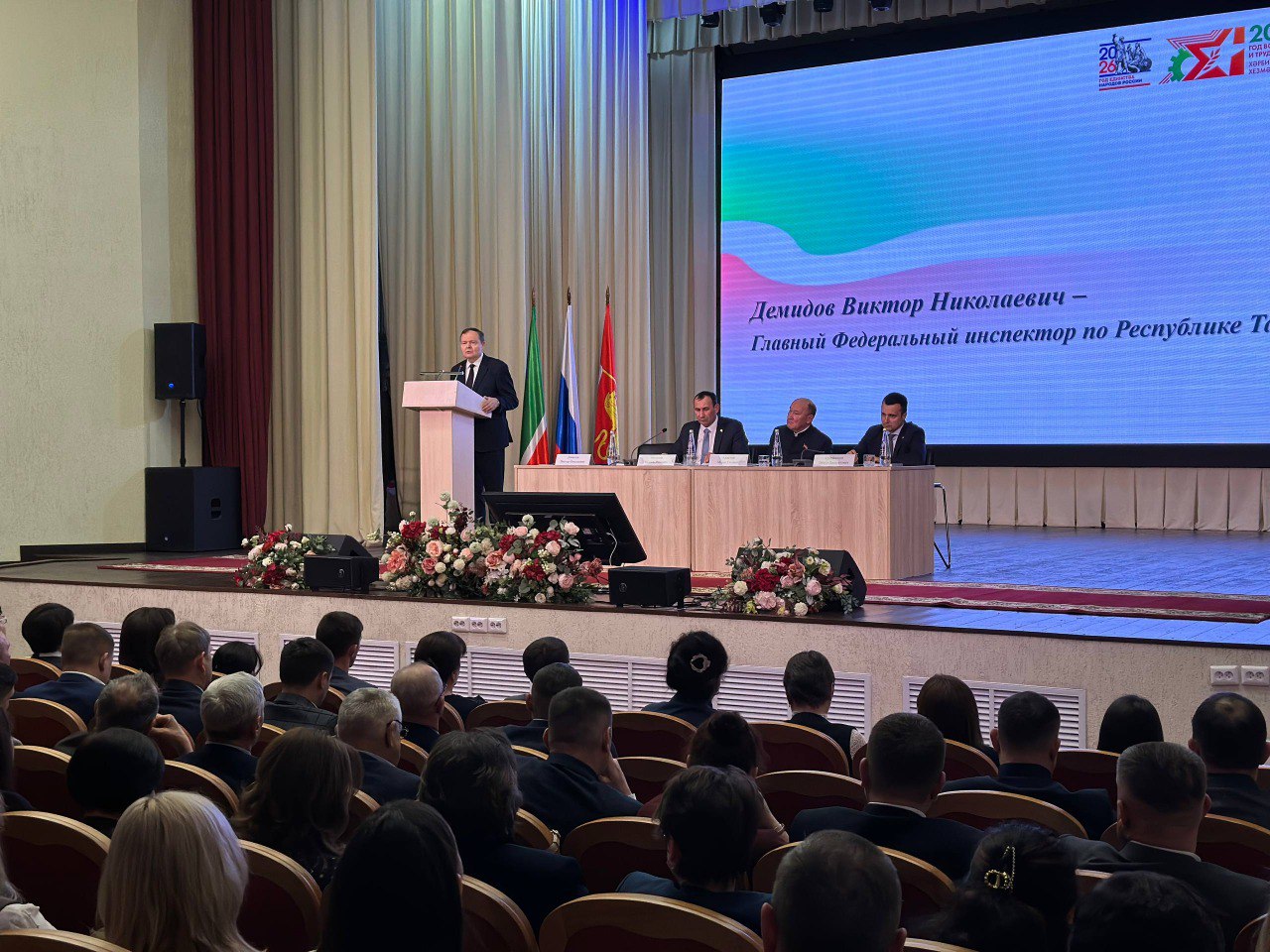 От имени полномочного представителя Президента РФ в ПФО Игоря Комарова главный федеральный инспектор приветствовал участников мероприятия. В своем обращении к присутствующим Виктор Демидов высоко оценил положительные результаты социально-экономического развития Тукаевского района. «Они солидные по всем направлениям — в сфере экономики, промышленности, социальной, культурной сферах, в здравоохранении, патриотическом воспитании. Нисколько не сомневаюсь, что вы и дальше продолжите этот замечательный тренд, результаты будут достойные вашего труда», — подчеркнул Виктор Демидов.
