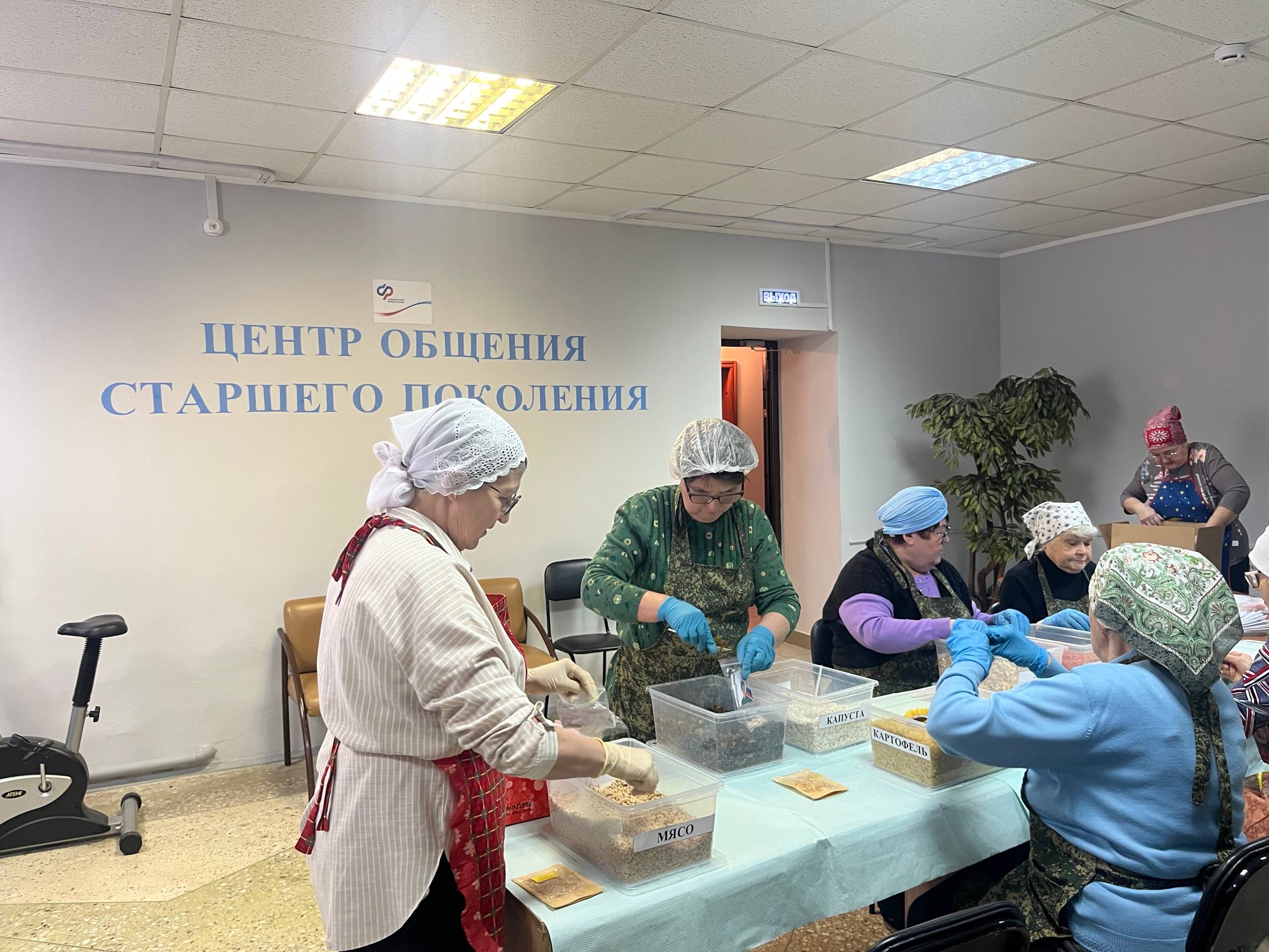 Завершением поездки стало посещение клиентской службы Отделения Фонда пенсионного и социального страхования РФ по Республике Марий Эл. Активные жительницы района – участницы центра общения старшего поколения – готовят «сухие» супы для бойцов, которые находятся в зоне СВО, и плетут маскировочные сети.