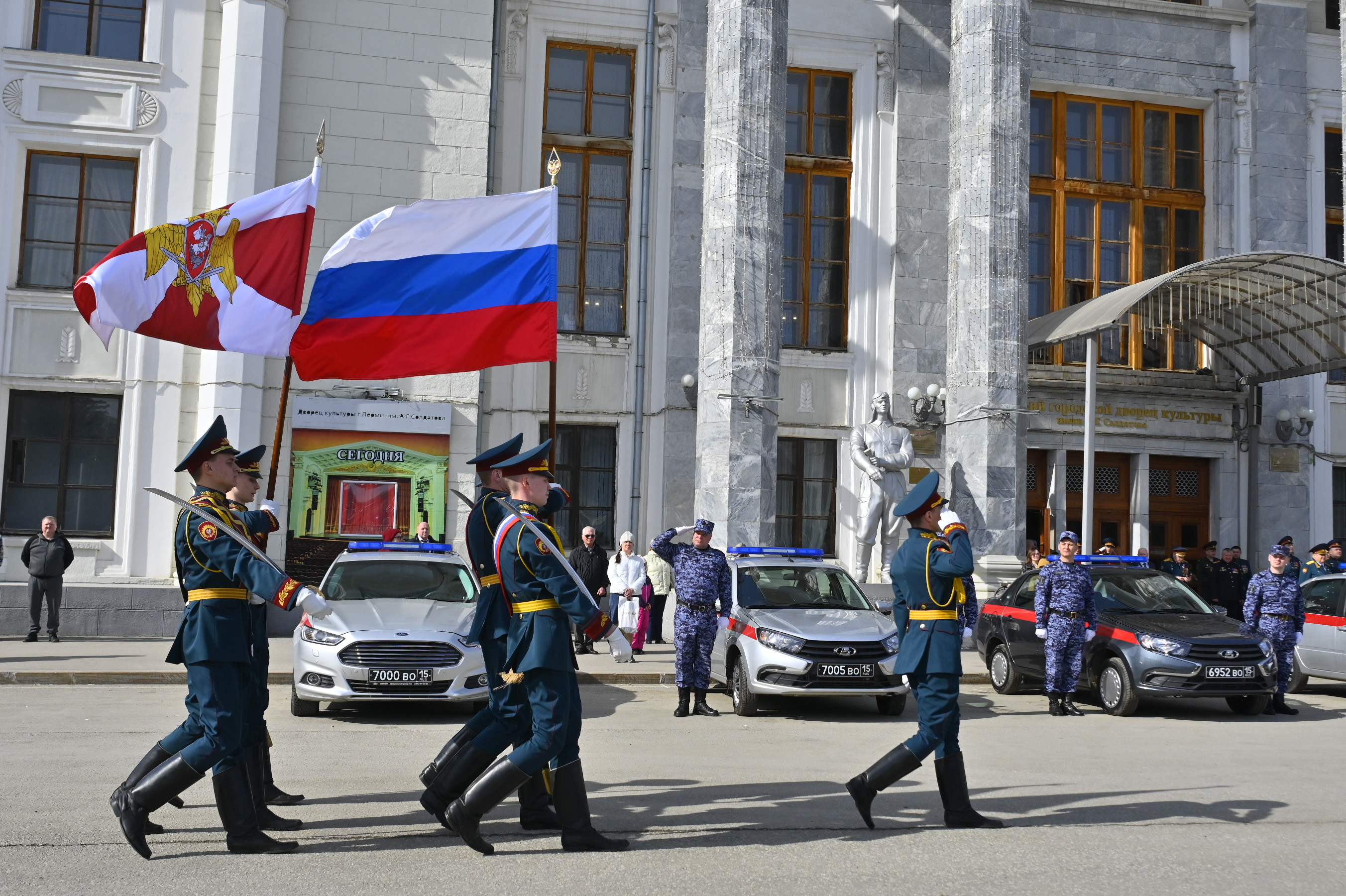 В ходе церемонии состоялась передача ключей от новых служебных автомобилей для подразделений Росгвардии. Автопарк вневедомственной охраны пополнили шесть автомобилей «Лада Гранта», приобретённых за счёт краевого бюджета в рамках государственной программы «Безопасный регион». Кроме Управления вневедомственной охраны по городу Перми, техника направлена в отделы по Березниковскому, Добрянскому, Кунгурскому и Соликамскому городским округам.